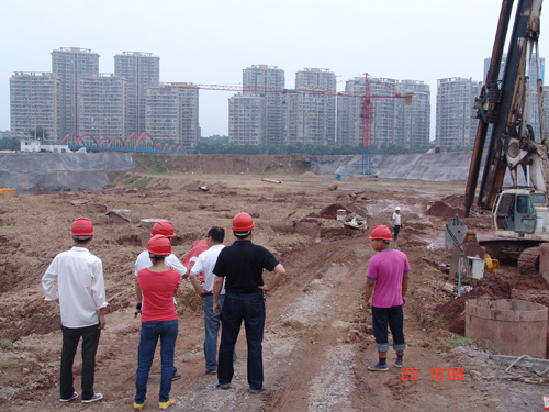 首先,公司领导听取了监理工程师对该项目工程监理规划和进展情况的介绍,对五百滩岛内基础设施配套工程项目部细致的监理工作表示了赞赏。然后,在五百滩项目监理工程部总监洪建功的带领下,察看了公园景观地下车库工程底板垫层现场作业,副总工周锡坤对地下车库基坑及底板垫层工程技术要求及监理工作应注意的事项进行了现场指导。随后,公司领导还察看了A区商业地块桩基工程作业现场。
