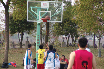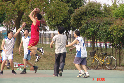 双方队员经短暂的热身运动后,比赛直接开始。经过几个来回,我方队员在体力、技术、配合上与对方明显存在差距,虽积极主动努力拼搏,但比分还是一直落后对方十多分。特别是对方一高一矮两位选手配合得相当到位,传、投、补等动作一气呵成,行云流水,不时获得场上阵阵喝彩声。我方杭州项目部的新队员李玉龙,人小胆大,不畏强手,发挥也相当出色,他在身高无优势的情况下,凭借过硬的球技与良好的体能以及与队友的积极配合,打出一个个高水平的球,频频得分,死死咬住两队的比分,获得了大家一致好评。最后金华外国语学校篮球队以100:84的比分赢得这场比赛。