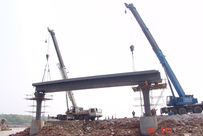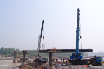 桥梁稳稳地安放两桥墩上