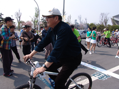 3月27日下午,浙中绿道开启仪式在市体育中心举行,市领导金中梁、钱世茂、王建平参加仪式,我公司宋剑平等员工也参与了绿道开启骑行活动。