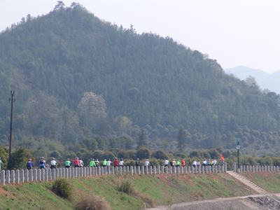 浙中绿道开启仪式骑行队伍通过山脚绿道