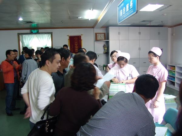 这是发生在广福医院体检中心前台服务处的一次简单对话,原来在2014年5月20-21日这两天,公司集中组织员工在广福医院体检中心进行健康体检,有二百多人参加了体检。此次体检在去年体检的基础上增加了多项检查项目,如生化系统项中增加了胆固醇、尿酸、血清总蛋白、肌酐、尿素测定、钾钠氯钙微量元素等检查,男性还增加了输尿管膀胱前列腺检查项目,女性则增加了子宫附件和双乳彩超检查项目。