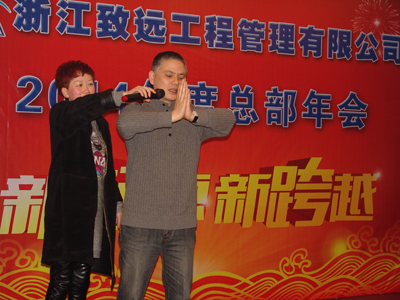 年会在主持人的新年祝词中拉开帷幕,接着由公司总经理赵肖春作新年致辞:感谢员工一年的辛苦,希望在大家共同努力下,公司越来越好。随后,赵总举杯向大家敬酒:共创美好“致远”未来。