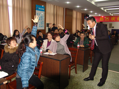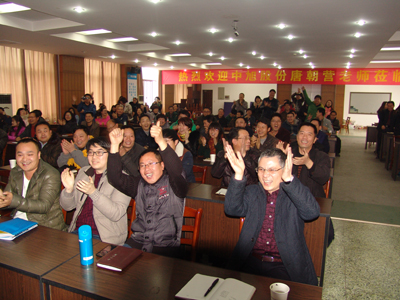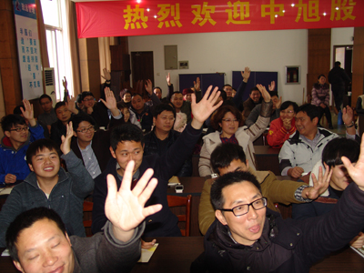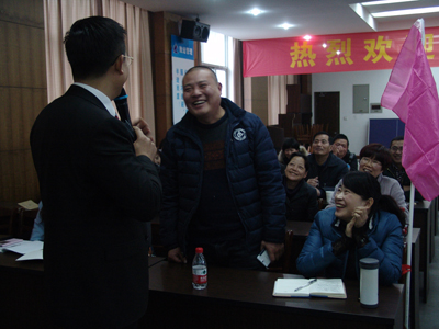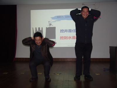 活动把所有参加人员按照循环报数分成六个团队,以PK、竞争的方式进行。首先,每个团队选出一个团长和政委,确定团队名称,并对竞争结果作出承诺。然后,唐朝营老师在授课的同时,提出问题,由各团队员抢答,按各团队人员回答问题的准确度给予相应团队适当的分数,并累加各团队所得的分数,作为各团队竞争的总分数。第一团队承诺不拿冠军团长“剃光头”、第二团队承诺不拿冠军团长“跑会场五十圈”、第三团队承诺不拿冠军团长“跑会场二十圈”、第四团队承诺不拿冠军团长“上下蹲五十个”、第五团队承诺不拿冠军团长“跑会场六十圈”、第六团队承诺不拿冠军团长“跑会场五十圈”。俗话说,有压力就有动力,此话真实不虚。在作出上述承诺后,各团队员都自感压力不小,在抢答问题的时候,举手个个奋勇当先,唯恐落他人之后,抢答场面一度火爆。第一时段,一团小步领先;第二时段,六团领先。“在竞争面前,压力越大,动力越大。”此话此时在这里得到了最佳诠释,作为六个团队中唯一承诺要求“剃光头”的第一团队,在第三时段的竞赛中,爆发出了超常的能量,以遥遥领先的总分数问鼎了“执行力内训冠军”奖杯。而作为其它五个团队团长,此时也“愿赌服输”,该蹲的蹲,该跑的跑。在他们的带领下,后来陆续有人加入了奔跑的队伍,最后竟汇成了全体人员奔跑的洪流,充分体现了我们致远人在竞争环境下的勇气、责任、担当和团结奋发的有为精神。
