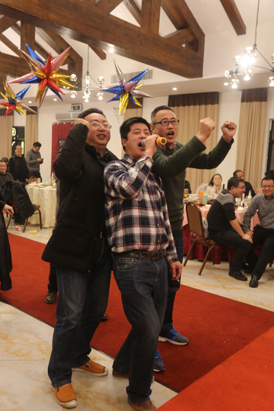 年会在《难忘今宵》、《鸡叫进行曲》中慢慢落下帷幕,许多员工意犹未尽,都争先要求上台表演,无奈相聚时刻总是让人感到短暂的,我们希冀来年此时与君再共度这美好时光。