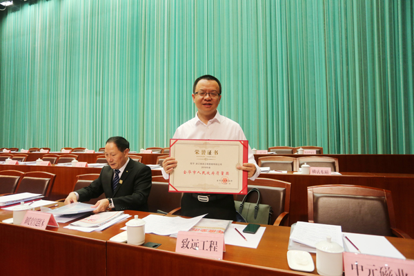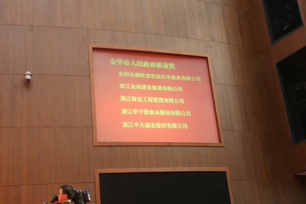 致远(左二)荣获2018年度“金华市人民政府质量奖”