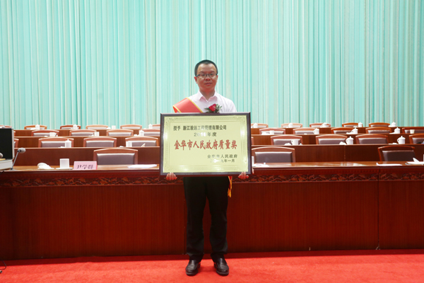 4月30日上午,2019年金华市工业大会在金华市文化中心召开,会上,金华市工业经济各类先进单位和先进个人受到表彰,我致远公司荣获2018年度“金华市人民政府质量奖”,为监理行业首家获奖企业,公司总经理卢一奇上台接受了奖牌。