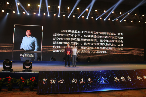 接着,致远2019年度表彰大会在豪迈的音乐声中拉开了序幕,获奖的有钱江杯、双龙杯、文明标化等项目监理部;有省优秀总监、优秀监理工程师;有公司优秀监理团队;有公司优秀总监、优秀监理工程师、优秀监理员;有营销金奖、营销明星奖奖;有优秀中层管理者、优秀员工、优秀通讯员、优秀新员工奖;有“伯乐”、“慧眼识珠”奖;有“最具奉献精神”、“特别奖”奖;有二十周年员工功勋奖。今年还特别是对监理项目部和个人在2019年度参与的各种活动中获得的荣誉进行了通报表扬,肯定了这些荣誉的获得为公司在主管部门和同行中赢得了美誉,对致远企业文化建设具有长远重要意义。这一项项奖励,凝结着全体员工团结拼搏、开拓进取、奋发有为的精神,将激励着致远员工不负韶华,砥砺前行!公司领导上台为每位得奖者颁发了奖励证书和奖金,并希望他们来年取得更好的成绩。