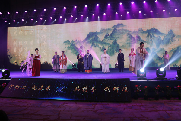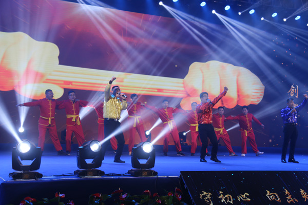 年会在悠扬豪迈的《我和我的祖国》合唱中慢慢降下帷幕,领导和参演员工走上舞台合影留念。节目演出结束,欢乐、激昂的气氛却令人久久难以平息。