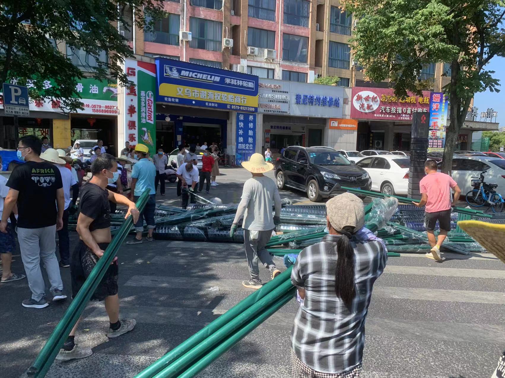 8月3日7点收到分派搭建江东街道下傅村封控隔离紧急任务后,交旅集团火速安排各单位人员组建突击队奔赴现场,浙江致远铁路义乌站广场综合交通枢纽站前广场监理部总监方俊强、党员吾有祥第一时间报名参加。