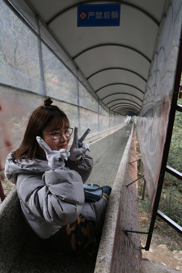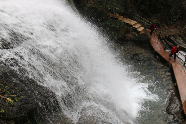女神们首先乘船游玩一段景区,蓝莹莹的湖水让女神们惊叹不已,感觉心灵受到极大的洗礼,感叹大自然的神奇魅力。下了船,沿溪流而上,涧水淙淙,似春使呢哝;溪岸边的柳树枝头,也正吐出鹅黄的嫩芽,齐齐的向天张开小口,显出春的勃勃生机;有幸的是,山的高处,因前一夜的大雨,巨大的瀑布倾泄而下,发出如雷似的隆隆响声,真为大自然的威力而震撼。女神们也被这景色陶醉了吧,纷纷拿出手机,留下这春的时光,留下自己靓丽的色彩,嗅着这叶的清香、花的芬芳、春的气息,女神们的心情得到了完全放松。一路上,女神们还玩了荡秋千、过独木桥、滑滑梯等项目,欢歌笑语充满了整个山谷。