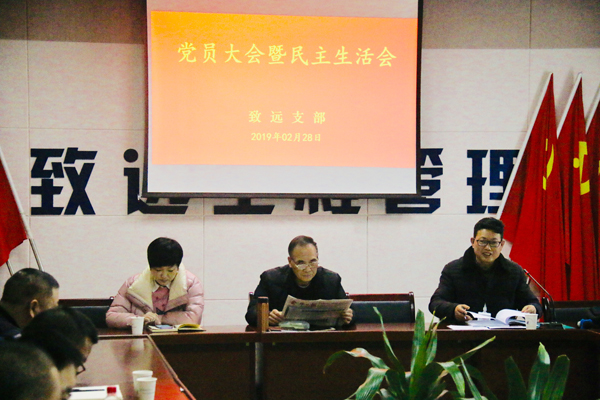 2月28日下午,致远支部在公司二楼会议室召开支部党员大会暨民主生活会,会议由支部委员姜元新主持。