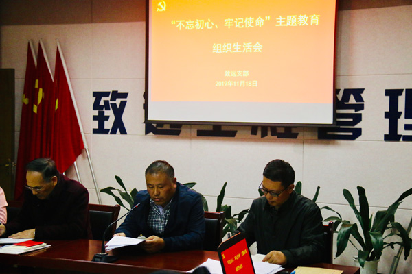 根据局党委“不忘初心、牢记使命”主题教育对两新党支部的具体要求,2019年11月18日下午,致远支部开展了“不忘初心 牢记使命”主题教育组织生活会。