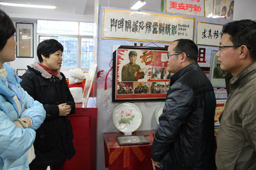 志愿者向公司党员讲解雷锋文化馆创办历史