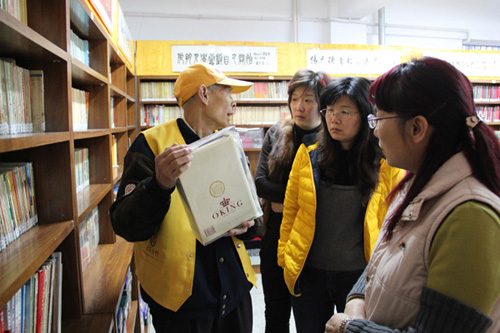 金华雷锋文化馆办馆人曹荣安向公司党员讲解收集情况