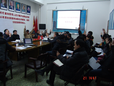 2012年12月21日下午,公司党支部在公司九楼会议室召开全体党员大会,有32人参加了会议,会议由公司党支部副书记胡志云主持。