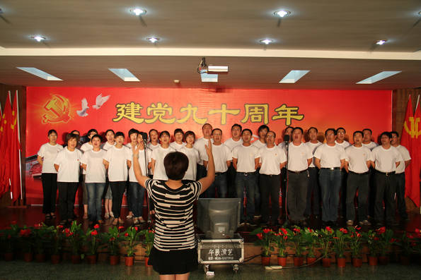 公司部分党员和员工激情合唱《没有共产党就没有新中国》和《团结就是力量》为红歌会比赛拉开序幕