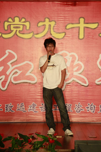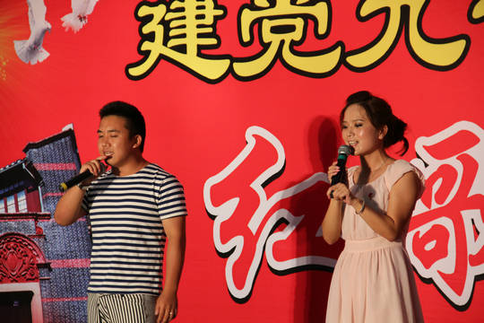 红歌会节目由公司员工姜元新、朱丽丽主持