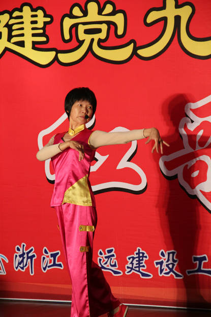 东阳黄金海岸公寓项目部徐美仙演唱歌曲《让我们荡起双桨》,并获最佳创意奖