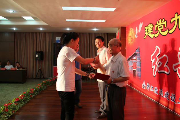 金华市组织部,市直机关工委,市文明办,建设局有关领导应邀观摩红歌会,并担任了评委。红歌比赛在大合唱《没有共产党就没有新中国》和《团结就是力量》的激昂旋律中拉开了序幕。