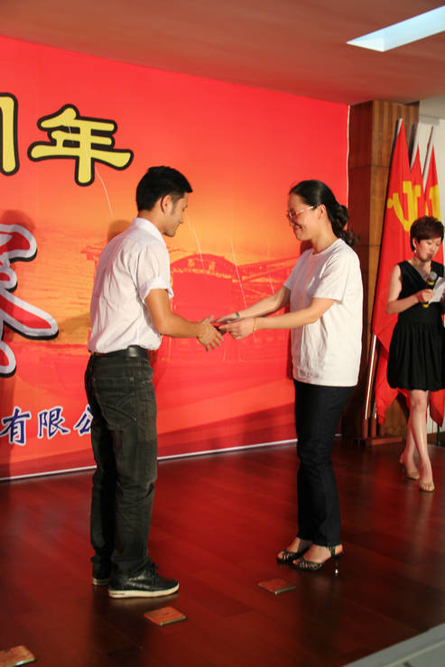 办公室主任胡志云给最具激情奖获得者赵依仁发奖,公司总经理赵肖春代领。