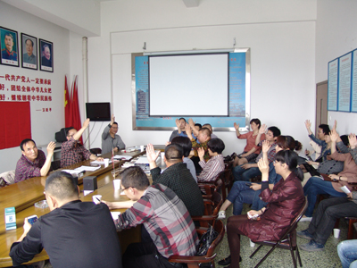 会议第三项议程是对程国达确定为建党对象进行表决。相关介绍人员对其表现进行了详细介绍,经党员大会举手表决形式,一致同意程国达同志确定为建党对象。