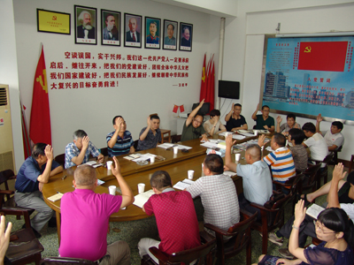 会议第五项议程是分组(试验组和致远组)座谈党员参与公司管理。会上,大家针对目前的公司状况,积极献计献策。有建言要树立正确的经营价值观,要兼顾国家、集体、个人利益,不可偏颇;有建言要建立清晰的经营架构;有建言公司管理制度也应分等级管理;有建言公司要做大做强,但更要做精;有建言要加强对分公司、合作伙伴、办事处的风险控制;有建言要注重契约精神的践行;有建言制度的建立要有实际操作意义;有建言工资的具体组成员工应有知情权等等。会议还对党小组分发了学习资料并收取了部分党费。