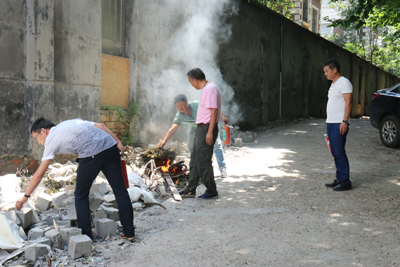 2016年6月6日下午,公司组织总部各部门有关人员在公司大院外堆放废试块处进行消防演练。