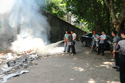 公司举行消防实战演练,旨在提高公司员工的消防安全意识,掌握消防器材类型及使用方式方法,增强公司消防安全的组织能力、应急能力和实战能力以及快速处理突发事件的能力和团结协作的精神,同时适时更新消防器材的灭火剂,保证消防器材的有效使用。